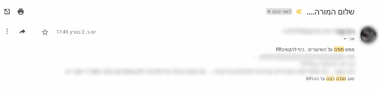 אז לכל התלמידות שלי, שכבר שמעו חלקים מהקורס, רוצות לרענן את החומר- וכייף להן שהחומר נשאר אצלן גם אחרי השיעור, פנו אלי, יש לי הצעה מיוחדת עבורכן. (יש הרבה חדש!)